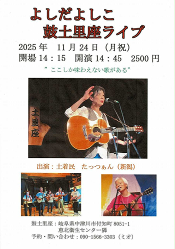 ◆11月24日 (月・祝)岐阜付知「鼓土里座」