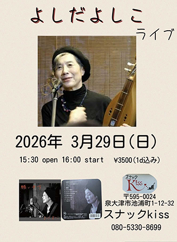 ◆ 3月29日(日)大阪府泉大津「スナック KISS」